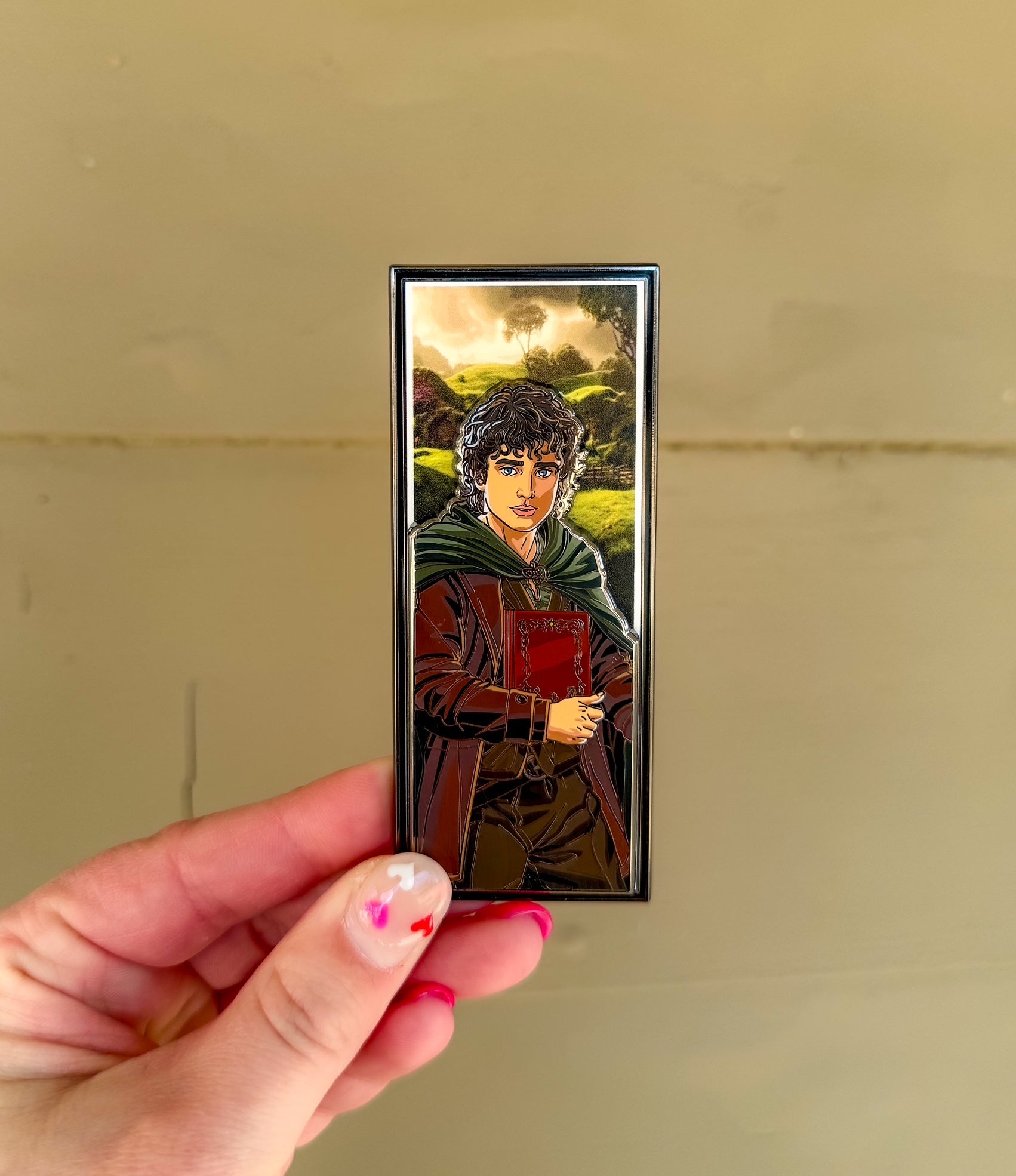 The Eras pins are about 3.75 inches tall, black nickel, and pin on pin. They could work next to each other as a set or for individual displays/use.