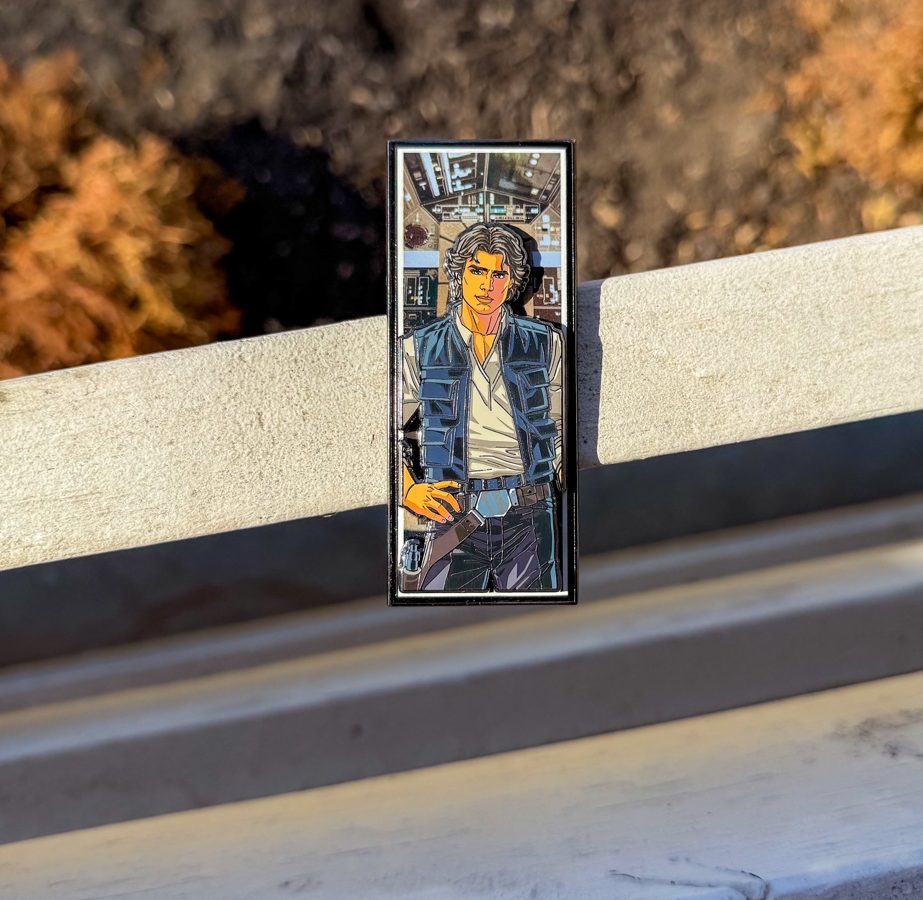The Eras pins are about 3.75 inches tall, black nickel, and pin on pin. They could work next to each other as a set or for individual displays/use.