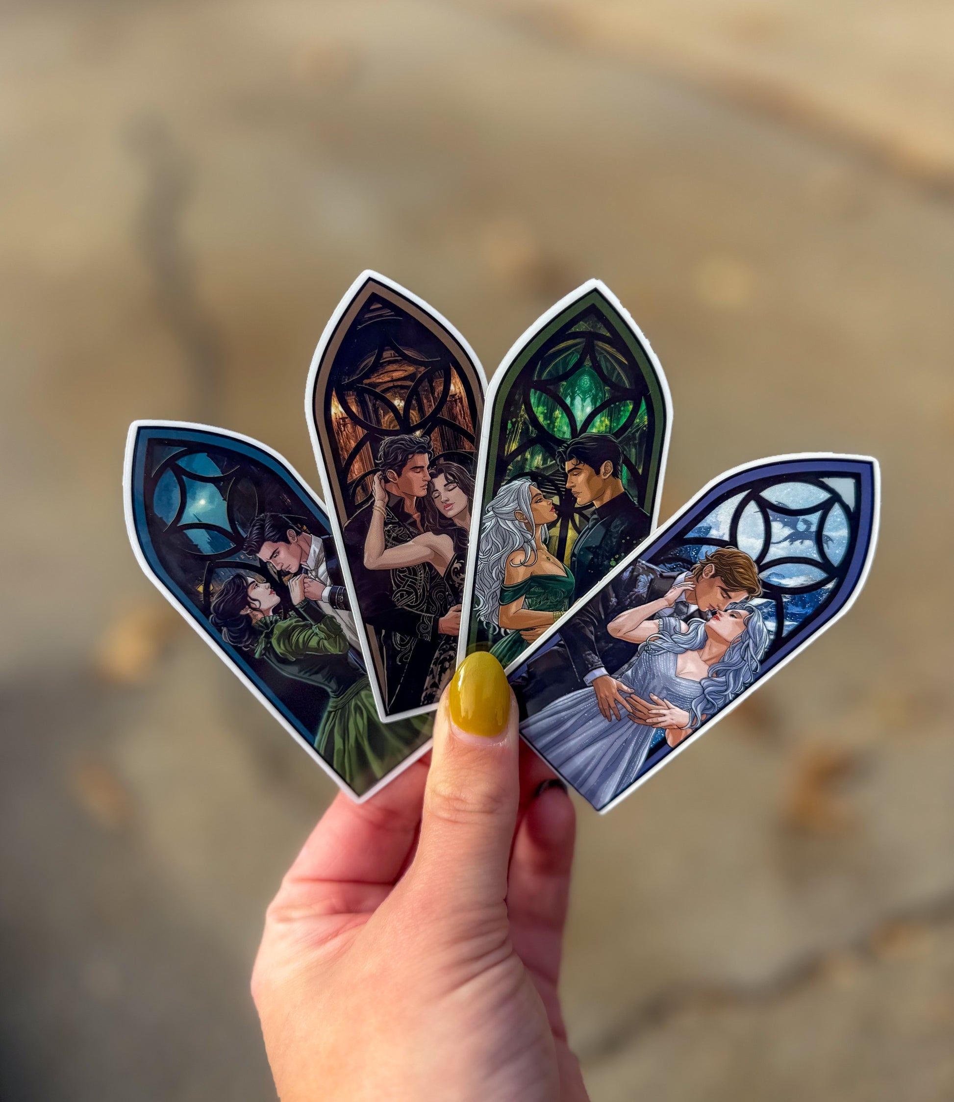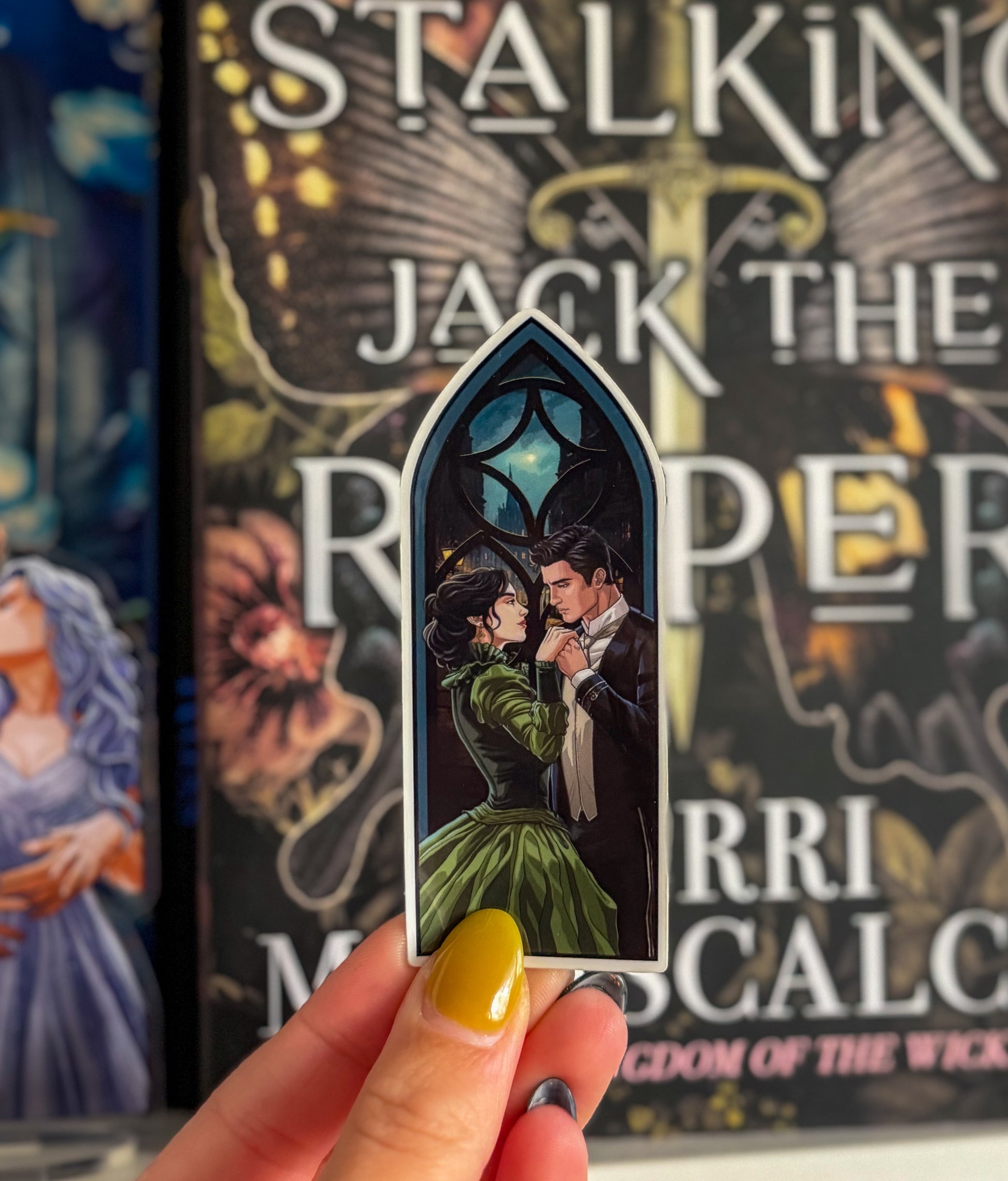 Our most popular couple stickers of the window series featuring the gorgeous & fantastic couples of Kerri Maniscalco's book series of Stalking Jack the Ripper, Kingdom of the Wicked, & The Princes of Sin.