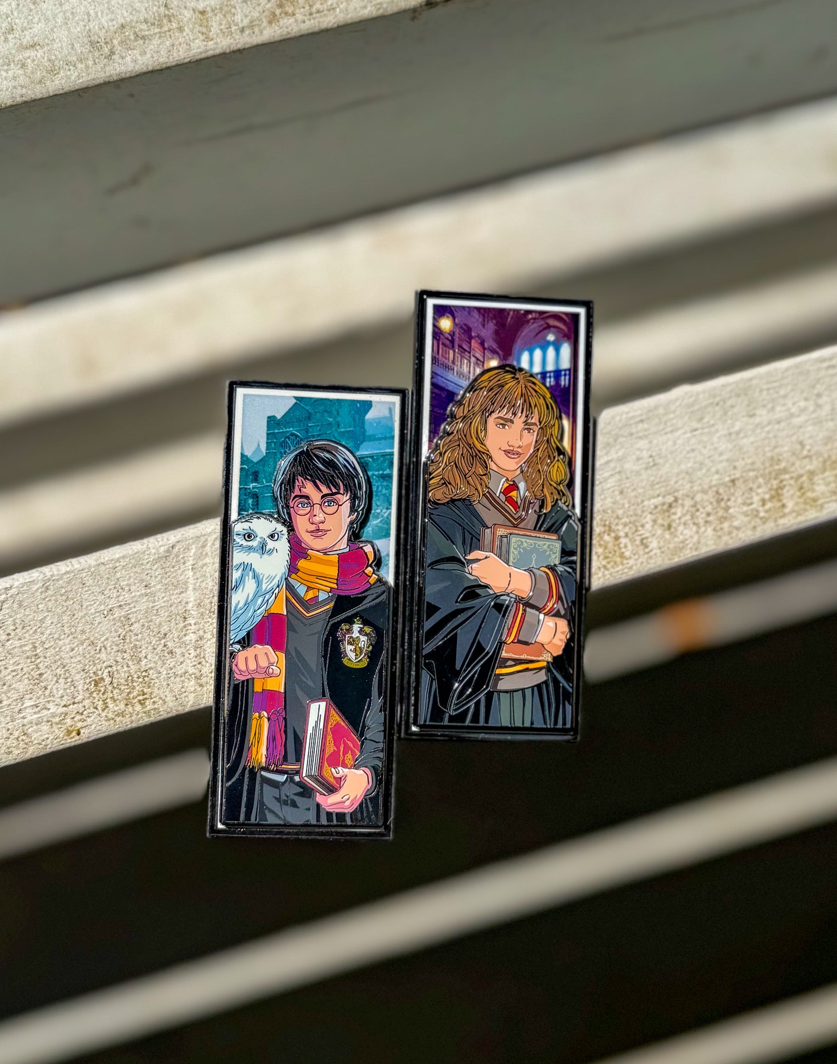 The Eras pins are about 3.75 inches tall, black nickel, and pin on pin. They could work next to each other as a set or for individual displays/use.